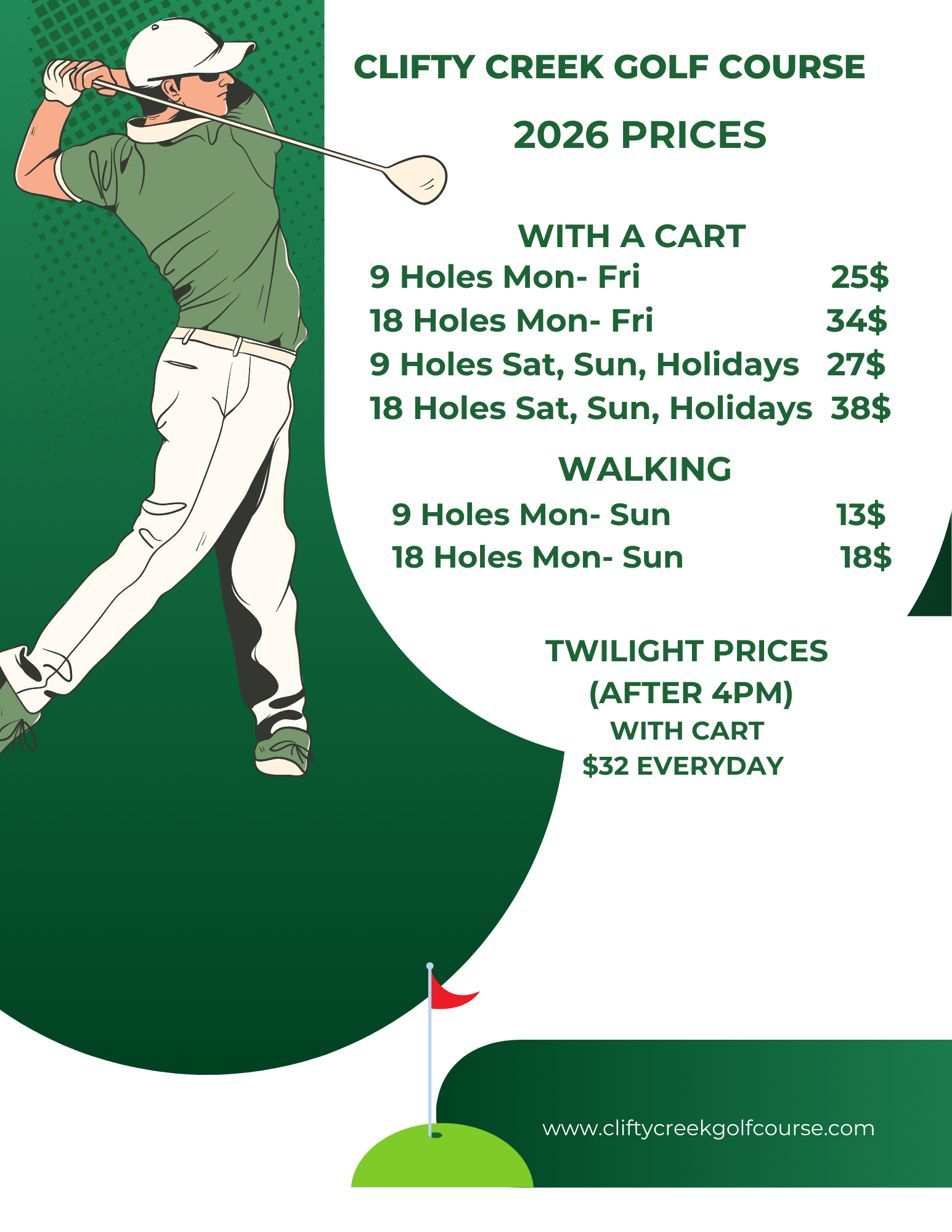 Clifty Creek Golf Course, located in Hope, IN, has been the premier golf destination for the Columbus, Shelbyville, Seymour, and surrounding areas since 1990. We offer a variety of golf memberships, including annual and senior options, as well as military discounts. Enjoy a round of golf and relax at our snack bar. Beyond the course, we actively engage with the community to host events that everyone can enjoy. Stay updated on all our events and offerings by following our Facebook page. For more information, reach out to Clifty Creek Golf Course in Hope today!